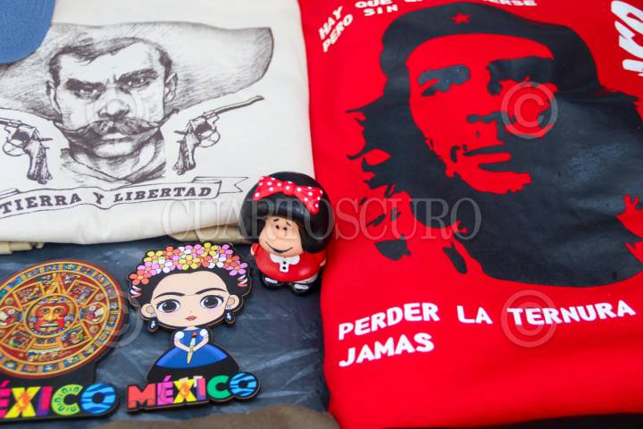 CIUDAD DE MÉXICO. 18AGOSTO2025.- Venta de todo de souvenirs, del ex presidente AMLO y de la ahora Presidenta Claudia Sheinbaum en puestos ambulantes del primer cuadro de la ciudad. FOTO: VICTORIA VALTIERRA/CUARTOSCURO.COM