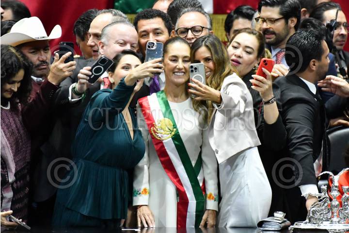 CIUDAD DE MÉXICO, 01OCTUBRE2024.- Claudia Sheinbaum, presidenta de México, se toma fotografías con legisladores, durante la sesión de Congreso General realizada en la Cámara de Diputados. FOTO: MARIO JASSO/CUARTOSCURO.COM