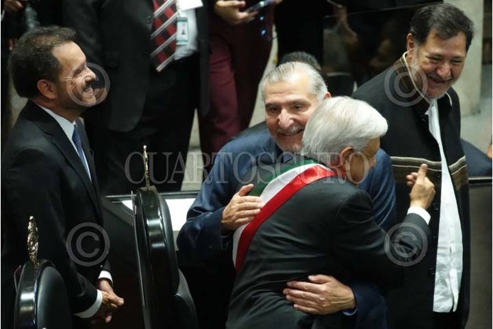 CIUDAD DE MÉXICO,01OCTUBRE2024.- Andrés Manuel López Obrador, expresidente de México, saludo a Adán Augusto, coordinador de Morena en el Senado, durante la entrega de la banda presidencial de Claudia Sheinbaum, primera presidenta constitucional de los Estados Unidos Mexicanos, durante la Sesión Ordinaria en la Cámara de Diputados. FOTO: GRACIELA LÓPEZ/CUARTOSCURO.COM
