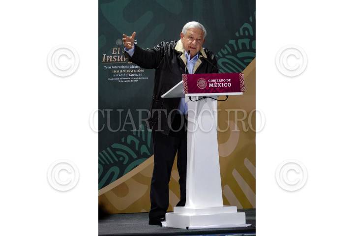 CIUDAD DE MÉXICO, 31AGOSTO2024.- Andrés Manuel López Obrador, durante el acto protocolario de la inauguración inauguración de la estación Santa Fe del Tren Interurbano. FOTOS: ROGELIO MORALES /CUARTOSCURO.COM