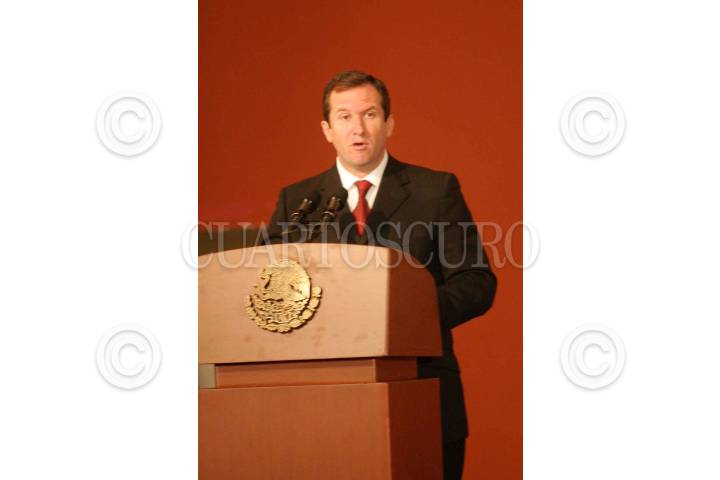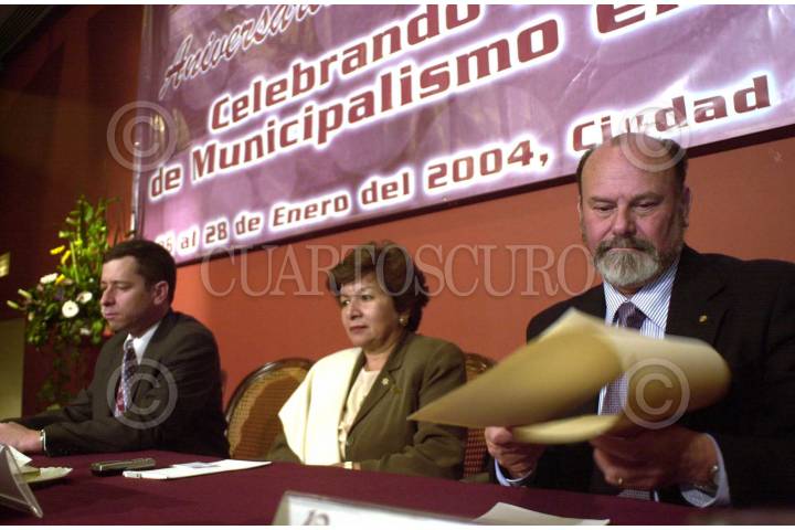 México, D.F.,28ENERO2004.- Vicente Fox Quesada, presidente de la República, tomó la protesta a la nueva mesa directiva de la Asociación de Municipios de México, A.C. Al término de su décima asamblea anual organizada en un hotel de la zona de Polanco. FOTO: Moisés Pablo/CUARTOSCURO.COM