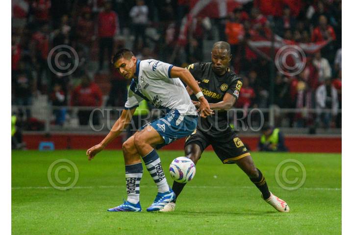 TOLUCA, ESTADO DE MÉXICO, 31OCTUBRE2023.- Guillermo Martínez delantero de Franja de Puebla y Andrés Mosquera defensa de los Diablos de Toluca en el partido correspondiente a la jornada 15 del Torneo Apertura 2023 de la Liga MX con un marcador final 0-1.- FOTO: CRISANTA ESPINOSA AGUILAR /CUARTOSCURO.COM
