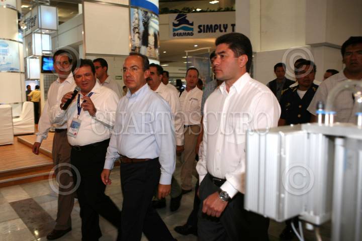 CANCÚN, QUINTANA ROO, 14AGOSTO2007.- Felipe Calderón Hinojosa, Presidente de la República, inauguró junto con el gobernador estatal, Felix González Canto, la XXI Convención Anual de ANEAS. FOTO: ALFREDO GUERRERO/CUARTOSCURO.COM