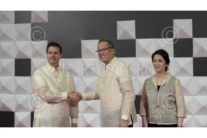 MANILA, REPÚBLICA, 18NOVIEMBRE2015.- El Presidente Enrique Peña Nieto asistió a la Cena de Bienvenida que ofreció a los líderes de las 21 economías que conforman la APEC, el Presidente de la República de Filipinas, Benigno Aquino III, y su esposa, a quienes saludó a su llegada. FOTO: PRESIDENCIA /CUARTOSCURO.COM