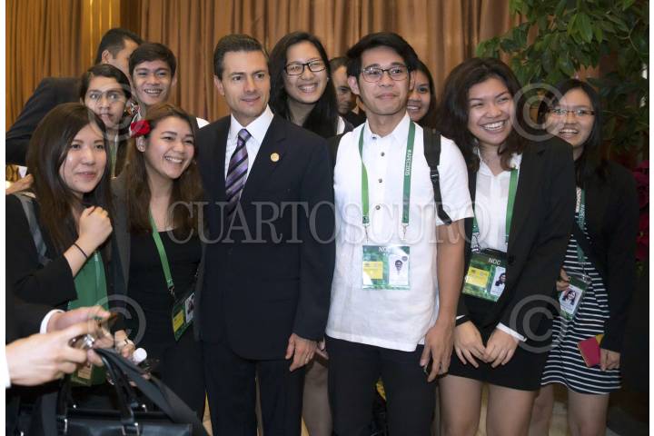 MANILA, REPÚBLICA DE FILIPINAS, 19NOVIEMBRE2015.- El Presidente de la República, Enrique Peña Nieto, saludó a jóvenes voluntarios que apoyan a las distintas delegaciones de los países participantes en la 23ª Reunión de Líderes Económicos del Foro de Cooperación Económica Asía-Pacífico (APEC). FOTO: PRESIDENCIA /CUARTOSCURO.COM