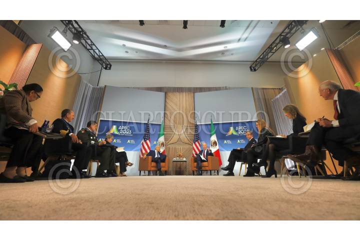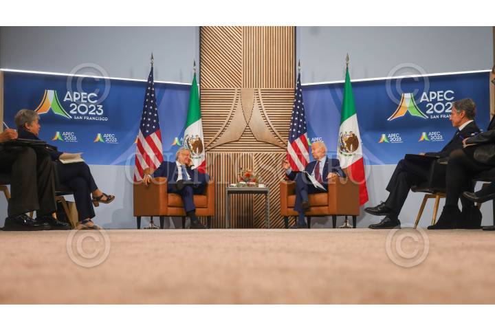 SAN FRANCISCO, CALIFORNIA, ESTADOS UNIDOS, 17NOVIEMBRE2023.- Andrés Manuel López Obrador, presidente de México, y Joe Biden, presidente de Estados Unidos, encabezaron la reunión bilateral con motivo de la APEC 2023. FOTO: PRESIDENCIA/CUARTOSCURO.COM