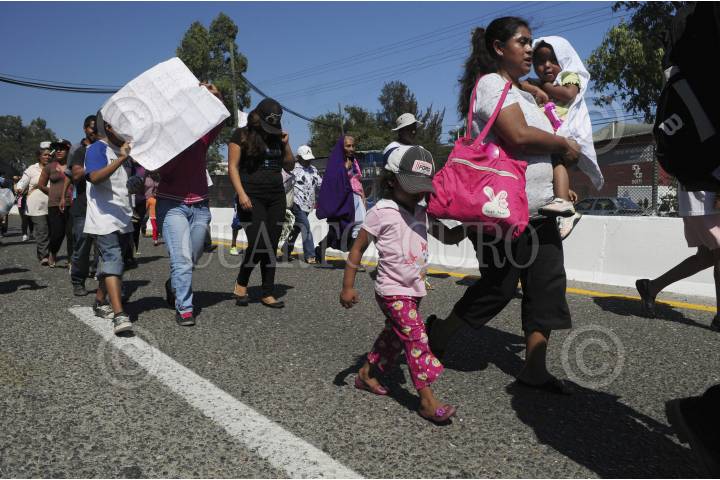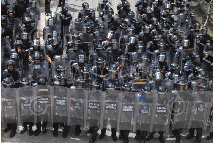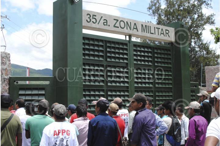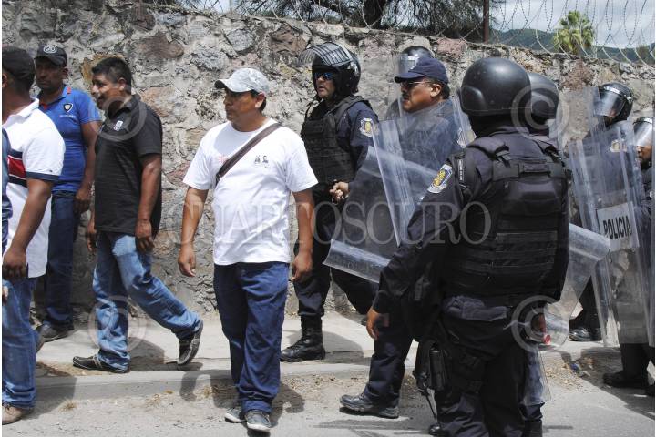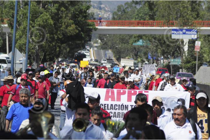 CHILPANCINGO, GUERRERO, 26AGOSTO2015.- Integrantes de la Asamblea Popular de Pueblos de Guerrero (APPG) y habitantes de la Sierra marcharon de la colonia el PRD hacia la 35 zona militar, arribando a las 13:15 aproximadamente donde solicitaron una audiencia, tocaron la puerta del cuartel y nadie les abrió ni los escucho, por lo que a las 14:15 mandos de la Policía Federal dialogaron con el dirigente Nicolás Chávez Adame y liberaron por unos minutos la autopista del Sol la cual tenían bloqueada; posteriormente bloquearon nuevamente por lo que elementos antimotines acudieron a replegarlos en su totalidad incluyendo las laterales a lo que integrantes de la APPG optaron por retirarse para reunirse en la cancha de la colonia del PRI. FOTOS: JOSÉ I. HERNÁNDEZ /CUARTOSCURO.COM