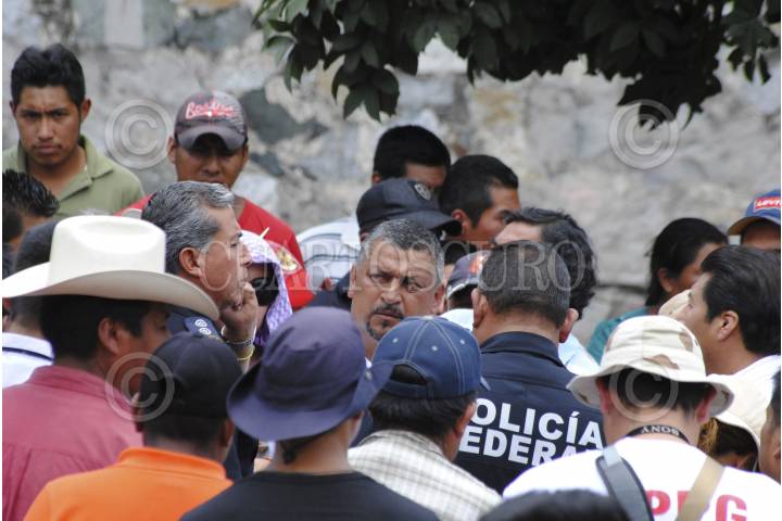 CHILPANCINGO, GUERERO, 19AGOSTO2015.- Integrantes de la Asamblea Popular de Pueblos de Guerrero (APPG) que encabeza Nicolás Chávez Adame, se reunieron con el alcalde en turno Mario Moreno Arcos y el alcalde electo Marco Antonio Leyva Mena, para hacerles planteamientos en cuestión de seguridad, la entrega de viviendas para damnificados por la tormenta tropical Ingrid y el huracán Manuel en el 2013, así como proyectos productivos. FOTO: JOSÉ I. HERNÁNDEZ / CUARTOSCURO.COM