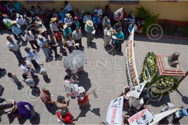 CHILPANCINGO, GUERRERO, 12OCTUBRA2009.- Indígenas provenientes de la montaña y las dos costas del estado pertenecientes a diversas organizaciones sociales, asi como integrantes de la Asamblea Popular de los Pueblos de Guerrero (APPG) y alumnos de la normal rural de Ayotzinapa, encabezados por Marcelino Diaz de Jesus y Nicolas Chavez Adame, realizaron una marcha denominada "Por la Dignidad y Resistencia de los Pueblos Indígenas" por las principales calles de la capital del estado, en el marco de la celebración del Dia de la Raza, para exigir a las autoridades estatales y federales el respeto a los derechos de los pueblos indígenas y afromexicanos, la cual concluyo con un mitin en la explanada de la plaza civica "Primer Congreso de Anahuac". FOTO: OSCAR ALVARADO/CUARTOSCURO.COM