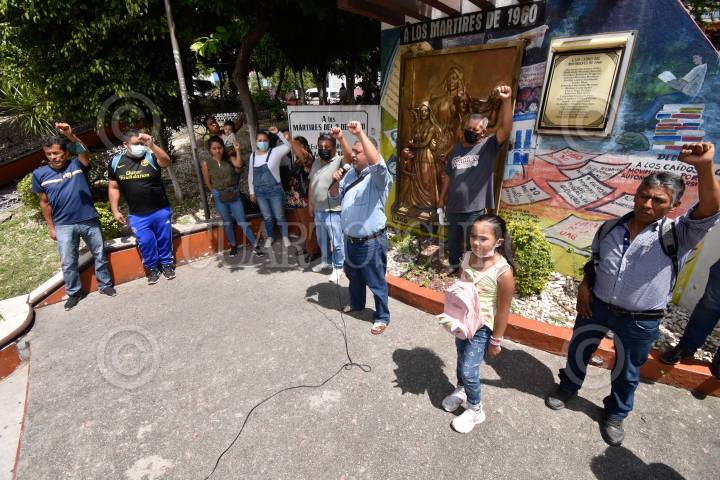CHILPANCINGO, GUERRERO, 10ABRIL2016.- Integrantes de la Asamblea Popular de los Pueblos de Guerrero (APPG), dirigidos por Nicolás Chávez Adame, integrantes de la Unión Campesina Emiliano Zapata (UCEZ), así como Alfredo Ramírez García, dirigente del Sindicato Único de Trabajadores del Colegio de Bachilleres del Estado de Guerrero (Sutcobach), marcharon de la Universidad Pedagógica Nacional (UPN) al andador Zapata, donde colocaron una ofrenda floral al busto del general Emiliano Zapata para conmemorar un aniversario luctuoso más del revolucionario y defensor de los campesinos. FOTO: JOSÉ I. HERÁNDEZ / CUARTOSCURO.COM