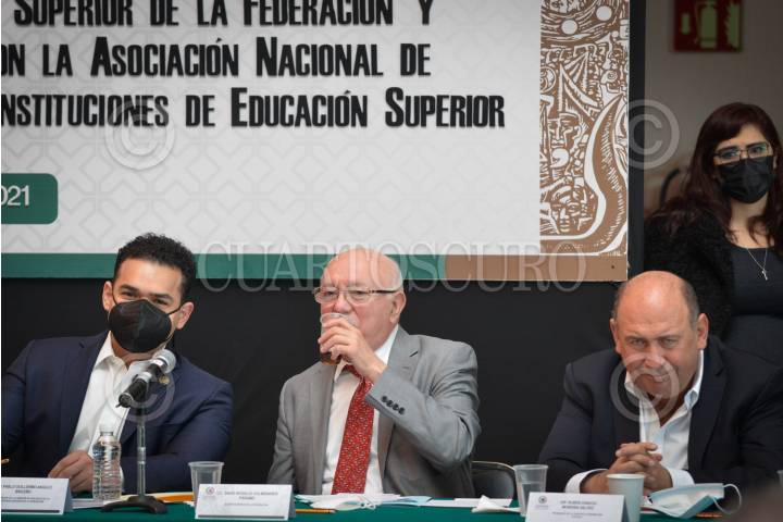 Los diputados del PRI: Pablo Guillermo Angulo, y Rubén Moreira, junto a David Colmenares Páramo Auditor Superior de la Federación, presidieron la reunión de las Comisiones Unidas de Vigilancia de la Auditoría Superior de la Federación y Educación con la Asociación Nacional de Universidades e Instituciones de Educación Superior.