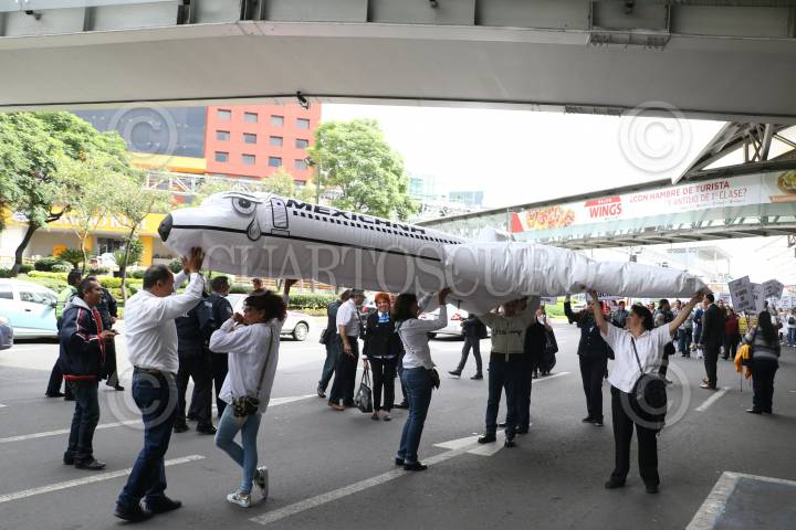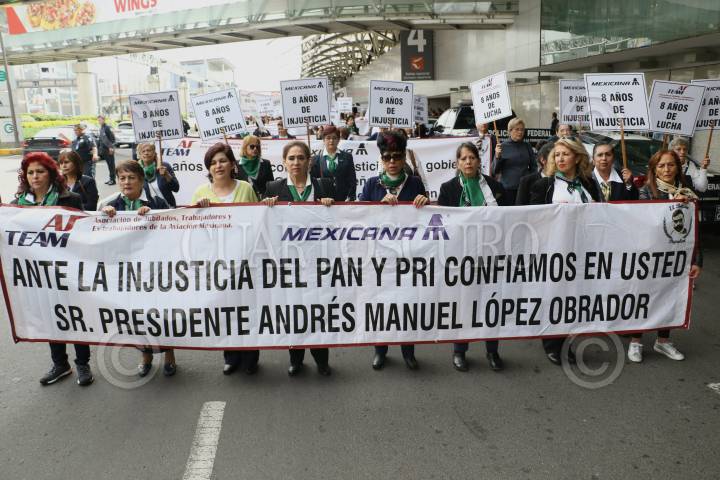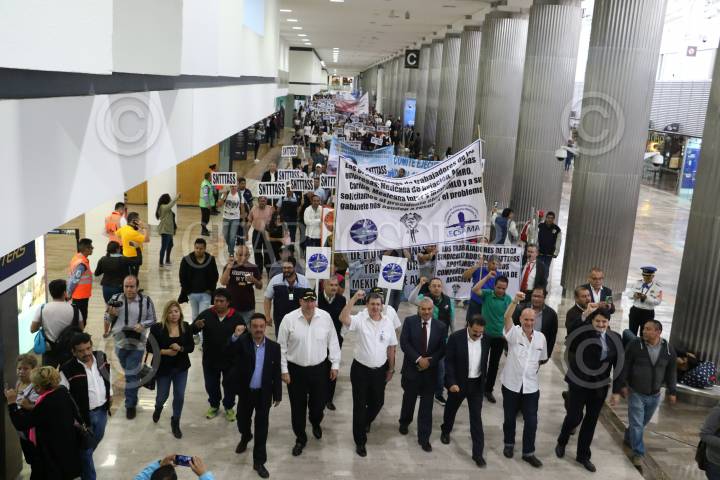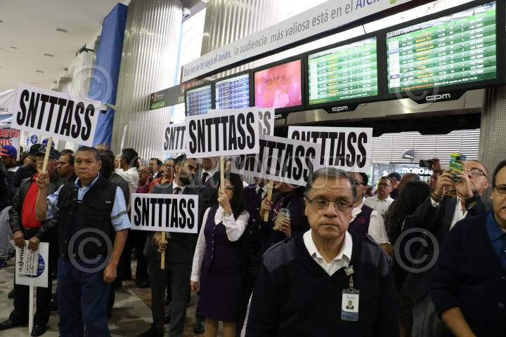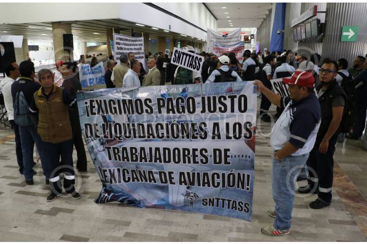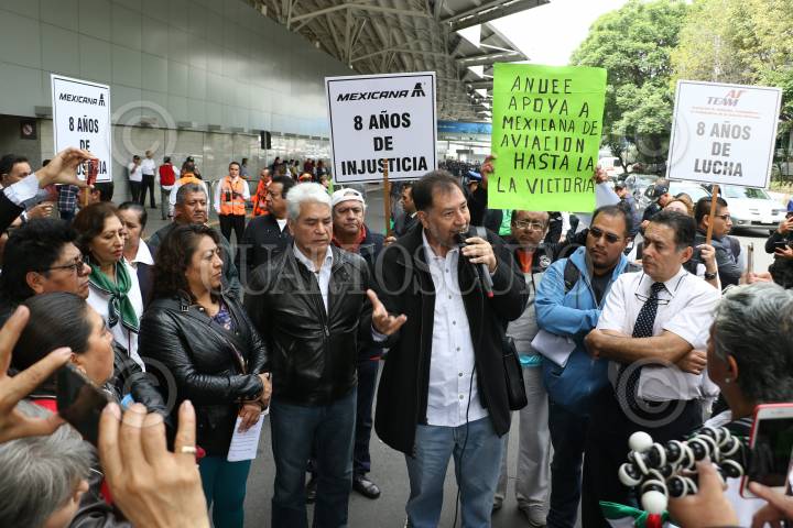 CIUDAD DE MÉXICO, 28AGOSTO2018.- Integrantes de la Asociación Sindical de Pilotos y Aviadores y ex trabajadores de Mexicana de Aviación se manifiestaron al exterior e interior de la Terminal 1 del Aeropuerto Internacional de la Ciudad de México parasolicitarle al presidente electo, Andrés Manuel López Obrador, que apoye el reinicio de operaciones de la aerolínea. FOTO: SAÚL LÓPEZ /CUARTOSCURO.COM