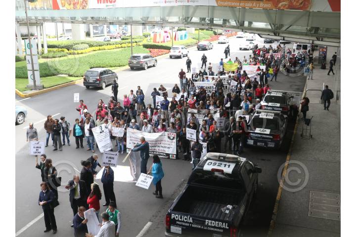 CIUDAD DE MÉXICO, 28AGOSTO2018.- Integrantes de la Asociación Sindical de Pilotos y Aviadores y ex trabajadores de Mexicana de Aviación se manifiestaron al exterior e interior de la Terminal 1 del Aeropuerto Internacional de la Ciudad de México par. solicitarle al presidente electo, Andrés Manuel López Obrador, que apoye el reinicio de operaciones de la aerolínea. FOTO: SAÚL LÓPEZ /CUARTOSCURO.COM