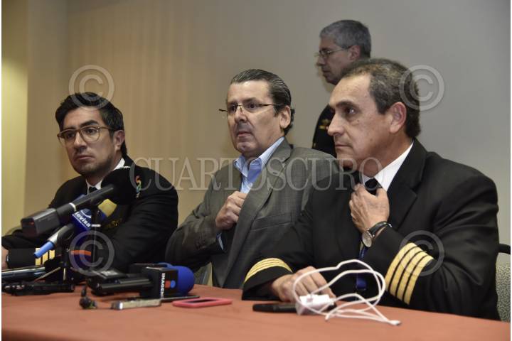 Empleados de Aeromar durante informe de huelga, tras suspender actividades de la aerolínea. En la imagen José Alonso Torres, vocero del ASPA.