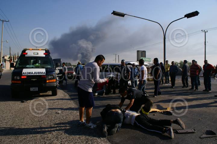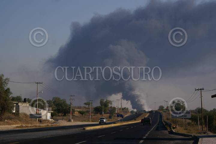 ATITALAQUIA, HIDALGO, 07MARZO2013.- Una explosión en una empresa de agroquímicos asentada en el parque industrial Atitalaquia obligó a las autoridades estatales a evacuar varias localidades del municipio y otras de Atotonilco de Tula. El olor a amoniaco alarmó a los habitantes de la zona, quienes acudieron a albergues instalados en municipios del estado de México. Hasta el momento el saldo es de un bombero intoxicado. FOTO: FRANCISCO VILLEDA /CUARTOSCURO.COM