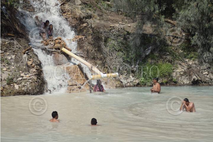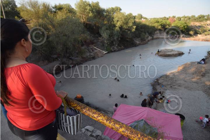 Habitantes de la comunidad Tlamaco y de otras localidades de Hidalgo se divierten en las aguas termales que se formaron hace unas semanas cuando comenzaron abortar tras los trabajos de perforación de un pozo.