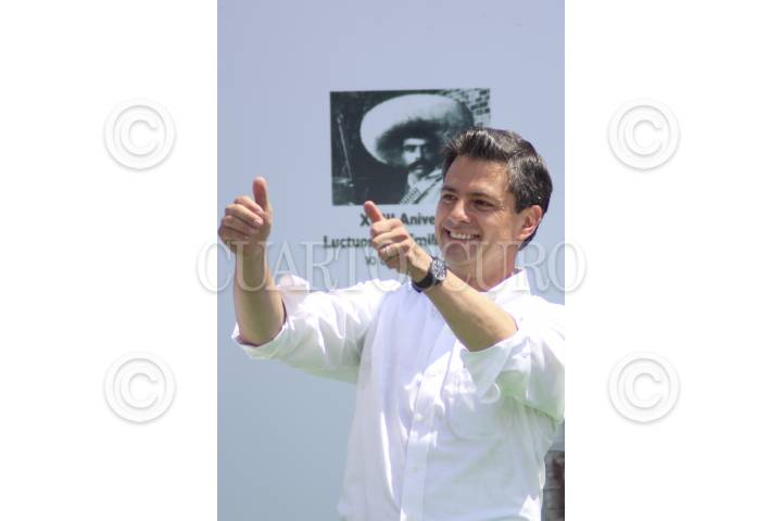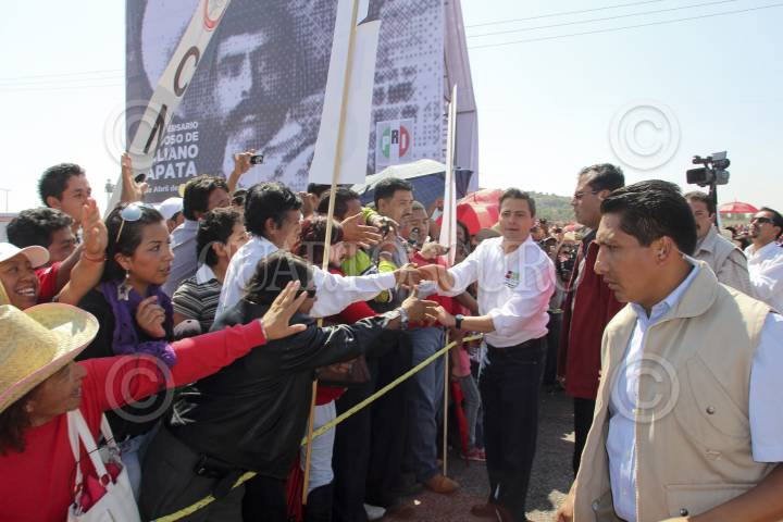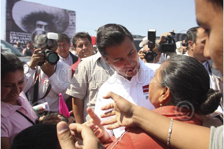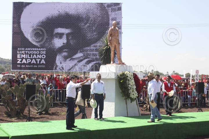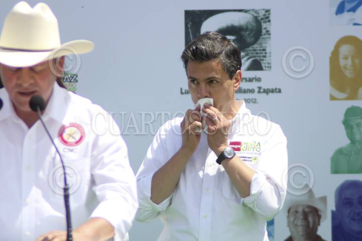 AXAPUSCO, ESTADO DE MÉXICO, 10ABRIL2012.- Enrique Peña Nieto, candidato del PRI y PVEM a la presidencia de la república, asistió a el homenaje por el 93 aniversario luctuoso del líder revolucionario Emiliano Zapata en la comunidad de Santo Domingo, Axapusco. Foto: SAÚL LÓPEZCUARTOSCURO.COM