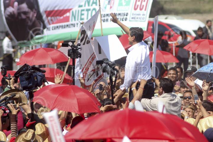 AXAPUSCO, ESTADO DE MÉXICO, 10ABRIL2012.- Centenares de simpatizantes Enrique Peña Nieto asistieron a la comunidad de Santo Domingo, Axapusco, a escuchar al candidato a la presidencia de la república del PRI y PVEM donde firmó un compromiso para garantizar la seguridad alimentaria del país. FOTO: SAÚL LÓPEZ /CUARTOSCURO.COM