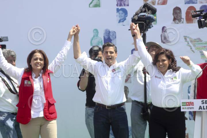 AXAPUSCO, ESTADO DE MÉXICO, 10ABRIL2012.- Enrique Peña Nieto, candidato del PRI y PVEM a la presidencia de la república, acompañado de Maria Elena Hererra y Ana Lilia Hererra, durante el homenaje por el 93 aniversario luctuoso del líder revolucionario Emiliano Zapata en la comunidad de Santo Domingo, Axapusco. Foto: SAÚL LÓPEZCUARTOSCURO.COM