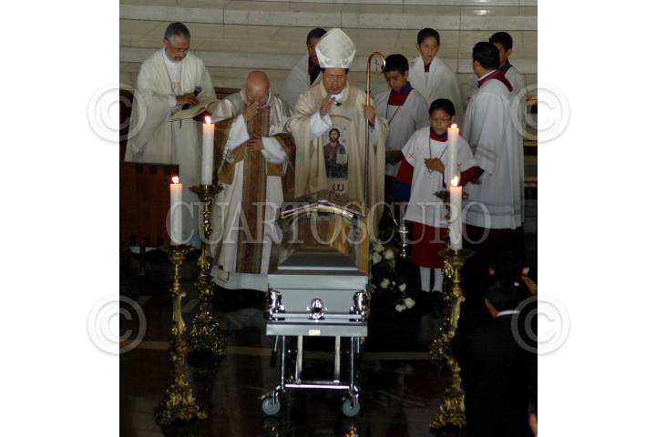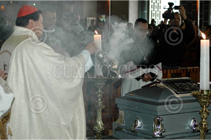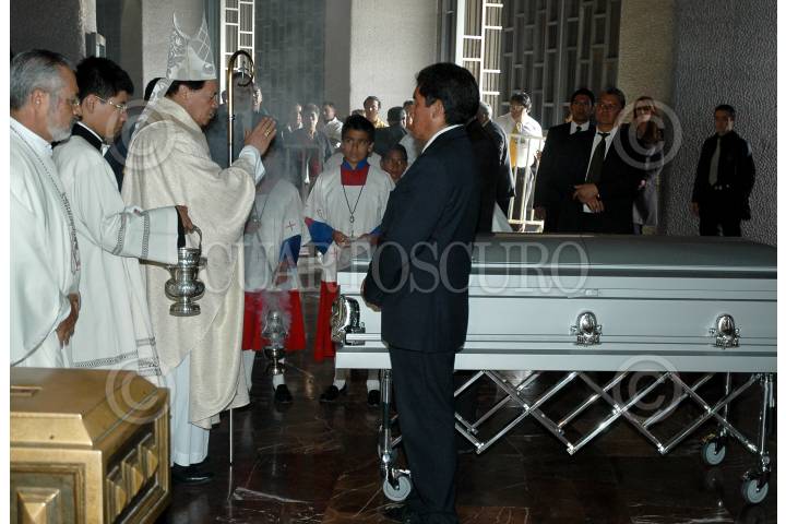 MÉXICO, D.F., 20JULIO2009.- El cardenal Norberto Rivera Carrera acompañado del Monseñor Diego Monrroy, rector de la Basílica de Guadalupe, bendicen el cuerpo de Guillermo Shulenburg, ex abad de la Basílica de Guadalupe; quien falleciera este domingo a los 93 años. FOTO: RODOLFO ANGULO/CUARTOSCURO.COM