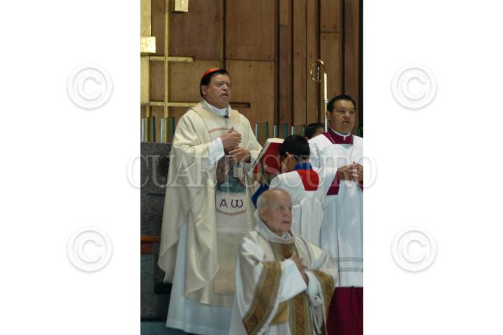 MÉXICO, D.F., 20JULIO2009.- El cardenal Norberto Rivera Carrera durante la misa de cuerpo presente en honor a Guillermo Shulenburg, ex abad de la Basílica de Guadalupe quien falleciera este domingo a los 93 años; en donde estuvieron presentes familiares, amigos, creyentes católicos y ministros religiosos. FOTO: RODOLFO ANGULO/CUARTOSCURO.COM