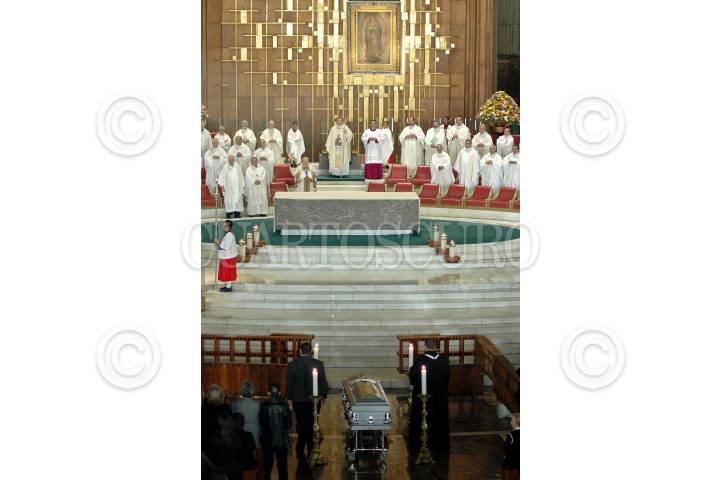 MÉXICO, D.F., 20JULIO2009.- Familiares, amigos, creyentes y ministros religiosos encabezados por el cardenal Norberto Rivera Carrera durante la misa de cuerpo presente de Guillermo Shulenburg, ex abad de la Basílica de Guadalupe quien falleciera este domingo a los 93 años. FOTO: RODOLFO ANGULO/CUARTOSCURO.COM