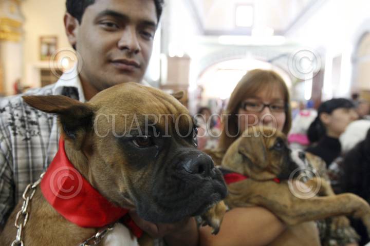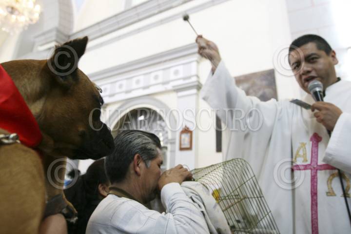 PUEBLA, PUEBLA, 17ENERO2012.- Fieles llevaron sus mascotas; perros, pericos y gatos a recibir la tradicional bendición durante la celebración de la misa en el día de San Antonio Abad, santo patrono de los animales. FOTO: HILDA RIOS/CUARTOSCURO.COM