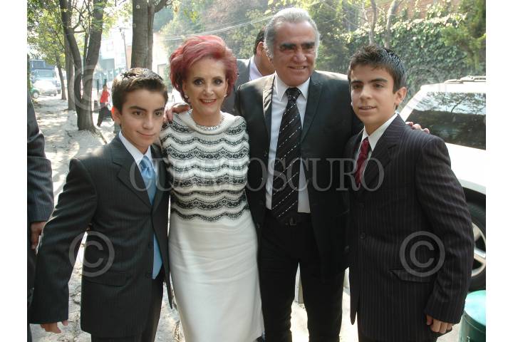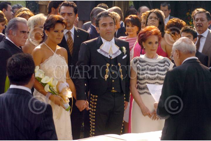 MÉXICO D.F., 15 DICIEMBRE2007.- Mara Patricia Castañeda y Vicente Fernández Jr. durante la ceremonia en donde contrajeron nupcias, son acompañados por Vicente Fernández y Maria del Refugio Abarca. FOTO: IVAN MENDEZ/CUARTOSCURO.COM