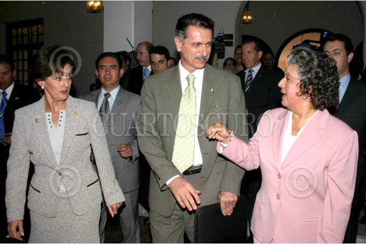 MEXICO, DF 21OCTUBRE2005.- Maria Elena Alvarez secretaria ejecutiva del inmujeres y el secretario de Gobernación Carlos Abascal durante el festejo de los 52ª aniversarios del sufragio femenimo en México. FOTO: Leonardo Casas/CUARTOSCURO.COM