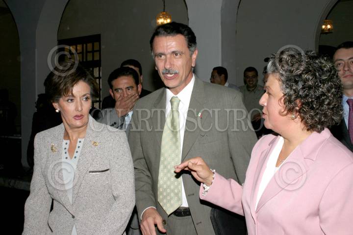 MÊXICO. D.F. 24ENRO2006.- Ana Teresa Aranda, Secretaria de la Sedesol, Ana Rosa Payàn directora del DIFy Carlos Abascal , Secretario de Gobernación durante el Informe anual sobre diagnostico de la familia mexicana que elabora el DIF. FOTO:Miriam Sànchez/CUARTOSCURO.COM