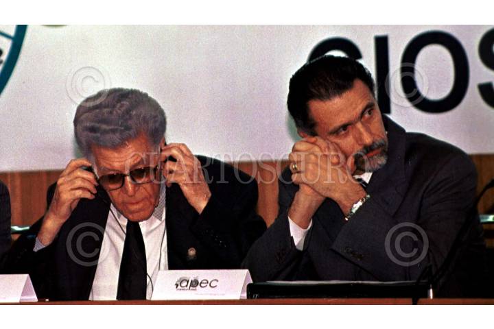 Leonardo Rodriguez Alcaine, secretario general de la Confederación de Trabajadores de México, (CTM) junto con Carlos Abascal Carranza, secretario del Trabajo, se reunierón con empresarios que asistirán a la reunión de APEC 2002 a mediados de octubre en Los Cabos, Baja Claifornia Sur.. FOTO: Eunice Adorno/CUARTOSCURO.COM