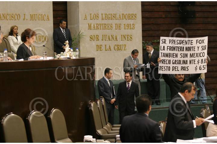 MÉXICO D.F. 18ABRIL2006.- El diputado Abdala de la Torre del PRI, se manifestó con una pancarta contra el presidente Vicente Fox, durante la sesión ordinaria de la Cámara de Diputados. FOTO: Diego Gallegos/CUARTOSCURO.COM