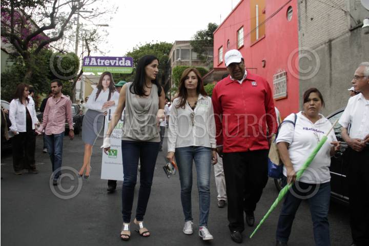 MÉXICO, D.F., 22ABRIL2015.- Laura Ballesteros, candidata del PRI a jefa delegacional de la Miguel Hidalgo, y Lilia Abed, candidata a diputada local, realizaron un recorrido por el Mercado América en la colonia América de la Delegación Miguel Hidalgo. FOTO: IVÁN STEPHENS /CUARTOSCURO.COM