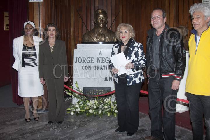 MÉXICO, D.F., 06DICIEMBRE2012.- Los miembros de Honor y Justicia de la ANDA, Verónica con K, Yolanda Seane, Sílvia Pinal, Abel Casillas y Pocholo ontaron una guardía de honor en el busto del cantante y actor, Jorge Negrete quien ayer cumplió 59 años de fallecido, la guardia se realizao en el Teatro que lleva su nombre y que también ayer cumplio 55 años de inaugurado. FOTO: FRANCISCO RODRÍGUEZ /CUARTOSCURO.COM