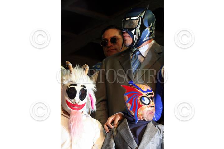 MÉXICO, D.F. 26ENERO2007. Luchadores como Marta Villalobos, Cibernético y Abismo Negro acudieron al Paseo de las Luminarias al homenaje al fundador de la AAA Antonio Pena en Plaza de las Galerías. FOTO. PAOLA HIDALGO/CUARTOSCURO.COM