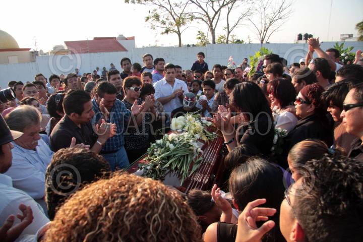 VILLAHERMOSA, TABASCO, 25MARZO2009.- Esta tarde el fallecido y afamado gladiador de la AAA, Abismo Negro, Andrés Palomeque, tuvo una misa de cuerpo presente en la parroquia del Recinto Memorial, donde tambien fue enterrado en presencia de familiares, amigos y luchadores con musica de mariachi. FOTO: MARCO POLO GUZMÁN HERNÁNDEZ/CUARTOSCURO.COM