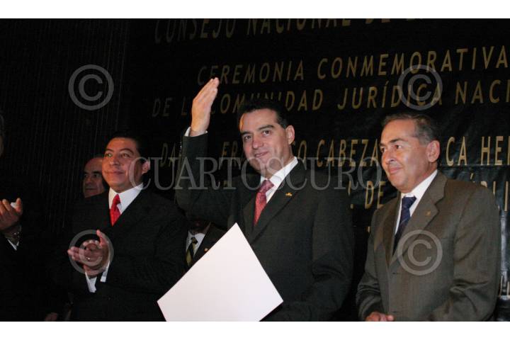 MEXICO, D.F. 12JULIO2005.- Ángel Buendia Buendia, Presidente del Consejo Directivo Nacional, Daniel Francisco Cabeza de Vaca, Procurador General de la Republica, y Joaquìn Davalos Paz, Presidente del Consejo Nacional de la Abogacia A.C., durante el festejo anual de la Comunidad Juridica Nacional; realizado en el Centro Libanès. FOTO: Osvaldo Aguilar/CUARTOSCURO.COM