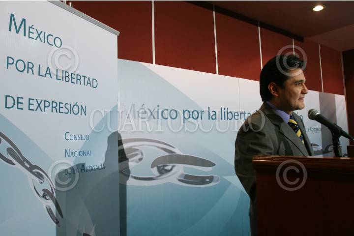 MÉXICO, D.F., 01JULIO2008.- Miguel Arroyo Ramírez, Presidente del Consejo Nacional de Abogacía, ofreció una conferencia de prensa en la que expresan su inconformidad ante la afectación de las garantías individuales fundamentales, particularmente la libertad de expresión y manifestación de las ideas, derivadas de la llamada Reforma Electoral. FOTO: MOISÉS PABLO/CUARTOSCURO.COM