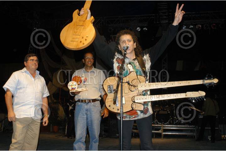 Cancun Quintana Roo, 19FEB2004. - El cantante Alex Lora, y el TRI, se presentaron en el carnaval de Cancun ante un lleno total de sus admiradores. FOTO: Amaranta Prieto/CUARTOSCURO.COM