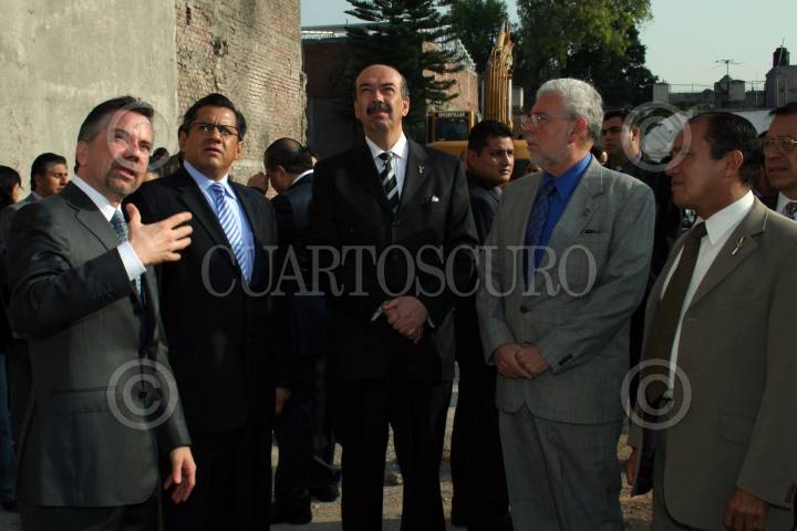 MÉXICO, D.F. 14MAYO2007.- Se iniciaron los trabajos del Centro Comunitario "Tepito", en lo que antes fuera La Fortaleza, Joél Ortega, secretario de seguridad pública, José Ángel Ávila Pérez, Secretario de Gobierno, Jesús Arturo Aispuro, Secretario de Desarrollo Urbano, el delegado de Cuauhtemoc, José Luis Muñoz Soria y José Elías Chedid Abraham, presidente del Colegio de Ingenieros durante el evento. FOTO: PAOLA HIDALGO/CUARTOSCURO.COM
