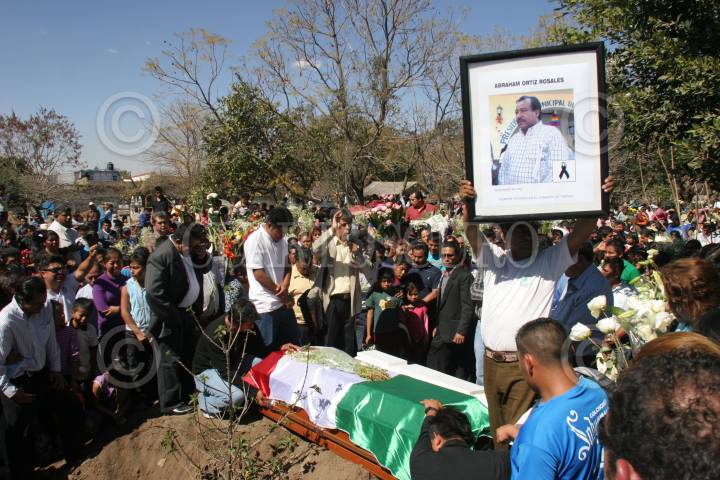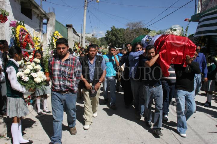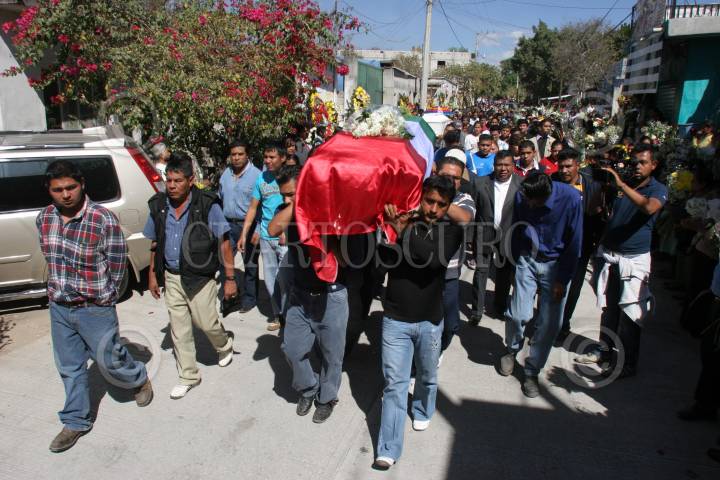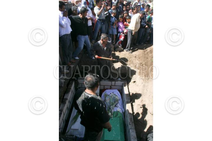 TEMOAC, MORELOS, 12ENERO2011.- Habitantes de Temoac y Amalcingo, le dan el último adiós a Abraham Ortiz Rosales, presidente municipal de Temoac, y a Isaac Ortiz, hijo del ex-alcalde, quienes fueron asesinados por un comando armado cuando viajaban en su camioneta sobre la autopista siglo XXl el pasado 10 de Enero. FOTO: SAÚL LÓPEZ/CUARTOSCURO.COM