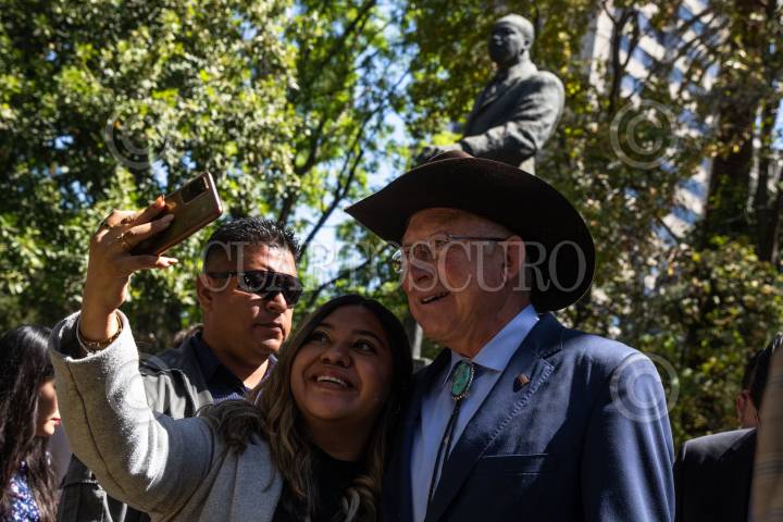 Ken Salazar, embajador estadounidense en México, encabezó la colocación de ofrendas florales en el monumento al Presidente Estadounidense, Abraham Lincoln, y del activista afroamericano Martin Luther King, en el Parque Lincoln.