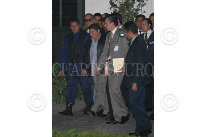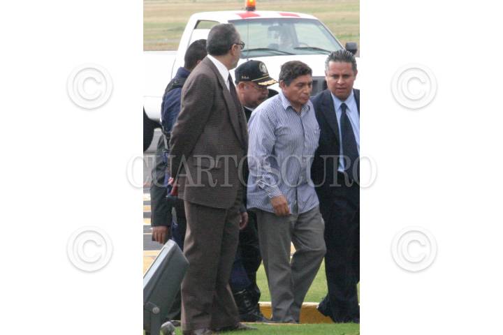 MEXDF 04 MAYO2004.- Deportado por el gobierno cubano, llego al hangar de la PGR Enrique Arcipreste del Abrego (centro) presunto dueño del paraje San Juan, acusado de fraude procesal. Lo acompaña Jorge Guillen fiscal de la PGJDF. (der) FOTO: Nelly Salas/CUARTOSCURO.COM