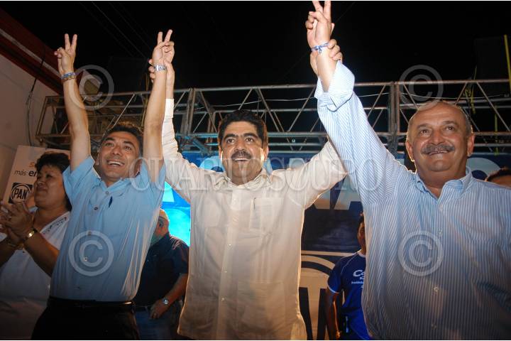 MERÍDA TUCATÁN 20MAYO2007.-La candidato del PAN a la gobernatura del estado Xavier Abreu, festeja su virtual triunfo ya que no se dieron resultados oficiales. FOTO: GUILLERMO PEREA/CUARTOSCURO.COM