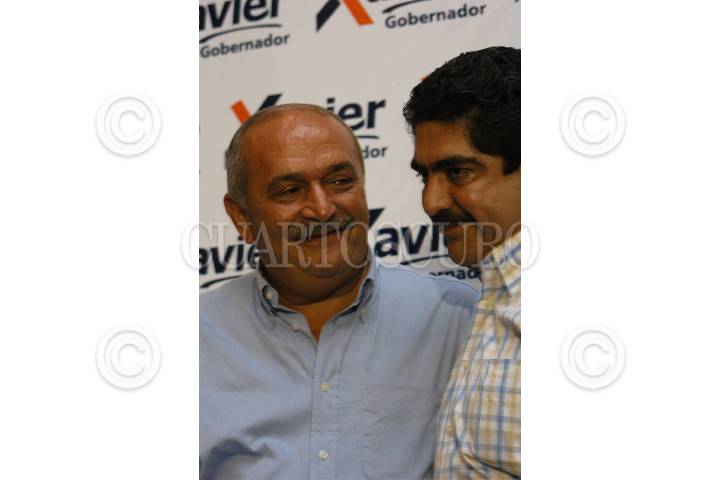 MERÍDA TUCATÁN 21MAYO2007.-El candidato del PAN a la gobernatura del estado Xavier Abreu acompañado por Manuel Espino dirigente nacional de su partido, durante la conferencia ofrecida a los medios de comunicación, con ojos vidriosos y apunto del llanto acepto la derrota en esta contienda electoral y le deseo lo mejor al proximo gobernador. FOTO: GUILLERMO PEREA/CUARTOSCURO.COM
