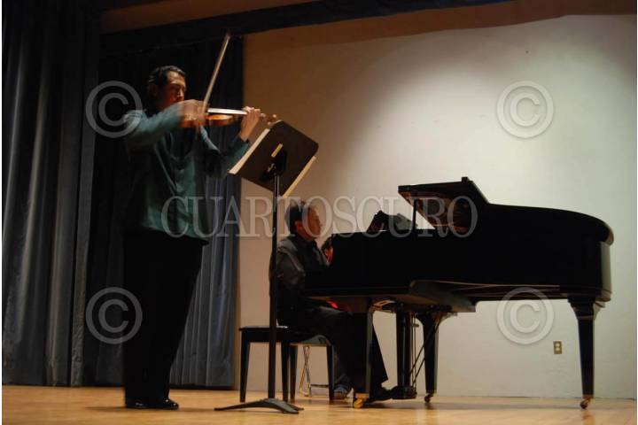 ZACATECAS, ZACATECAS, 18MARZO2008.- Hoy en el marco del Festival Cultural Zacatecas 2008, se presentó en el museo de arte abstracto Manuel Felguérez, el dúo Silvestre Revueltas, violín y piano, el cual interpretó música clásica.. Julio Saldaña al violín y en el piano Felipe de Jesús Marcial Ruiz. FOTO: CARLOS SEGURA/CUARTOSCURO.COM