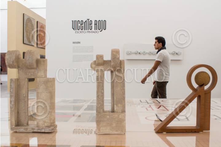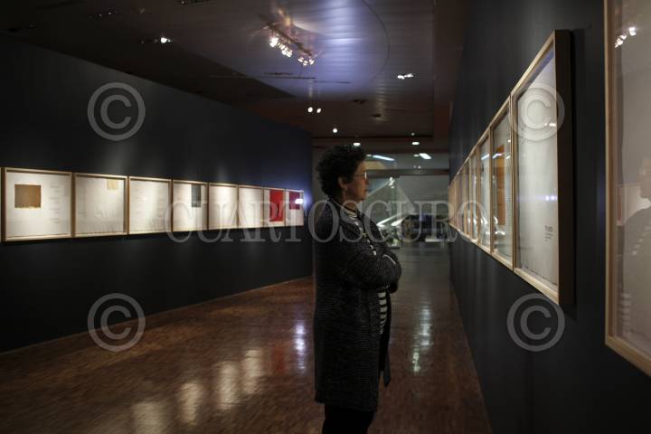 MÉXICO, D.F., 23MAYO2015.-El artista plástico Vicente Rojo presentó la muestra Escrito/Pintado en el Museo Universitario de Arte Contemporáneo. En esta muestra el artista hace un recorrido de su trayectoria a través de su obra abstracta. FOTO: DAVID POLO /CUARTOSCURO.COM