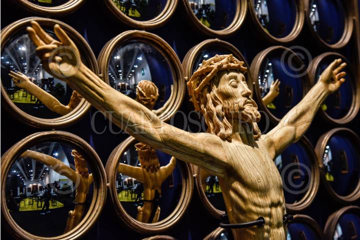 CIUDAD DE MÉXICO, 06JULIO2024.- Inauguración de la exposición Crasa Urdimbre Cósmica, de Mariana Pereyra, en la Galería Luis Cardoza y Aragón, del Centro Cultural Bella Época, donde además se presentó Fiesta Matronal, pieza muro procesual a intervenir por mujeres invitadas. FOTO: MARIO JASSO/CUARTOSCURO.COM