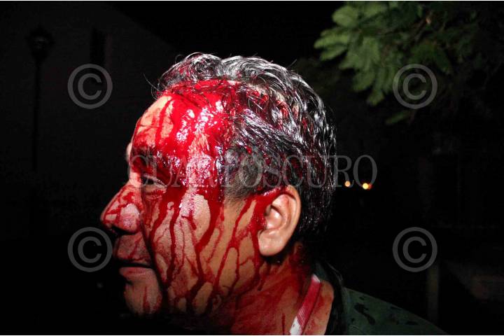 OAXACA, OAXACA 25NOVIEMBRE2006.- El reportero y corresponsal del Financiero Abundio Nuñez Sanchez fue golpeado por un elemento federal, apesar de averse indentificado tras los enfrentamientos entre meimbros de la APPO y elementos de la PFP en el centro de la ciudad. FOTO: MAX NUÑEZ/CUARTSOCURO.COM