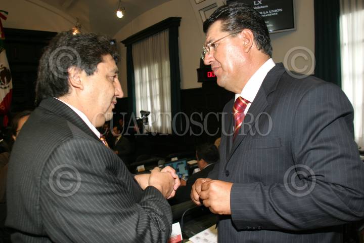 MÉXICO, D.F., 25JULIO2007.- Los legisladores del Partido del Trabajo, Abundio Peregrino y Alejandro González Yañez, durante la sesión de la Comisión Permanente en el Senado. FOTO: MOISÉS PABLO/CUARTOSCURO.COM